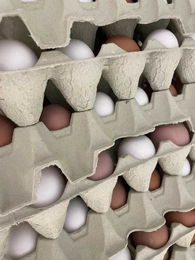 Egg pakket på brett.